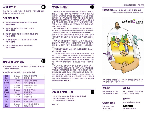 2025-02-23 페이지 정보 작성자 선한열매교회 댓글 0건 조회 2,351회 작성일 25-02-25 07:20 목록 본문 2025-02-23 이전글2025-03-02 25.03.03 다음글2016-02-16 25.02.17 댓글 0 댓글목록 등록된 댓글이 없습니다. 목록