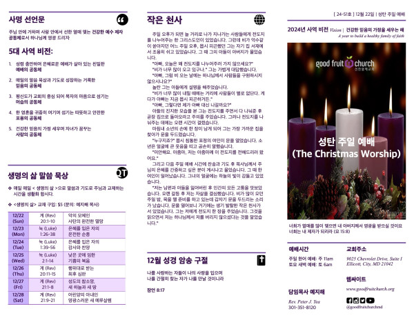 2024-12-22 페이지 정보 작성자 선한열매교회 댓글 0건 조회 4,681회 작성일 24-12-23 10:41 목록 본문 2024-12-22 이전글2024-12-29 24.12.31 다음글2024-12-15 24.12.17 댓글 0 댓글목록 등록된 댓글이 없습니다. 목록