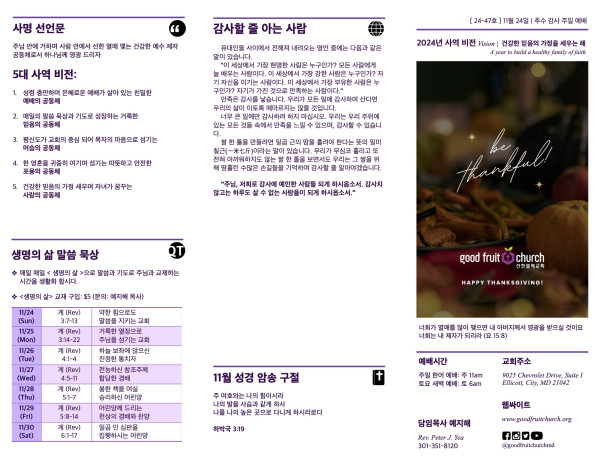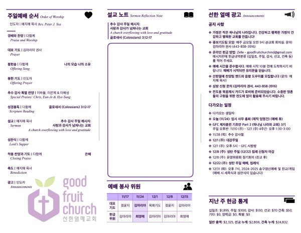 2024-11-24 페이지 정보 작성자 선한열매교회 댓글 0건 조회 4,942회 작성일 24-11-25 20:16 목록 본문 2024-11-24 이전글2024-12-01 24.12.09 다음글2024-11-17 24.11.17 댓글 0 댓글목록 등록된 댓글이 없습니다. 목록