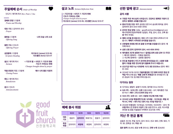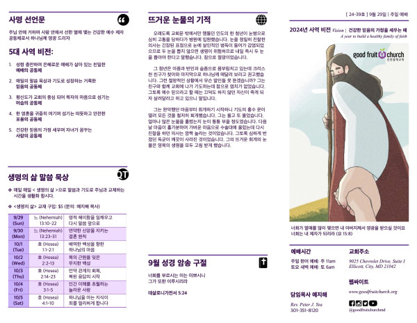 2024-09-29 페이지 정보 작성자 선한열매교회 댓글 0건 조회 4,143회 작성일 24-09-30 05:25 목록 본문 2024-09-29 이전글2024-10-06 24.10.09 다음글2024-09-22 24.09.23 댓글 0 댓글목록 등록된 댓글이 없습니다. 목록