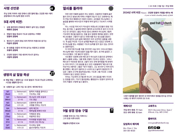 2024-09-01 페이지 정보 작성자 선한열매교회 댓글 0건 조회 5,373회 작성일 24-09-02 08:19 목록 본문 2024-09-01 이전글2024-09-08 24.09.10 다음글2024-08-25 24.08.26 댓글 0 댓글목록 등록된 댓글이 없습니다. 목록
