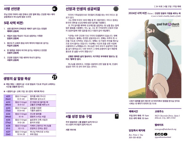 2024-04-21 페이지 정보 작성자 선한열매교회 댓글 0건 조회 5,748회 작성일 24-04-22 11:31 목록 본문 2024-04-21 이전글2024-04-28 24.04.30 다음글2024-04-14 24.04.15 댓글 0 댓글목록 등록된 댓글이 없습니다. 목록