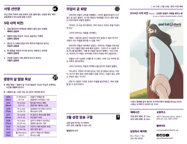 2024-03-24 페이지 정보 작성자 선한열매교회 댓글 0건 조회 4,566회 작성일 24-03-25 11:40 목록 본문 2024-03-24 이전글2024-03-31 24.04.01 다음글2024-03-17 24.03.18 댓글 0 댓글목록 등록된 댓글이 없습니다. 목록