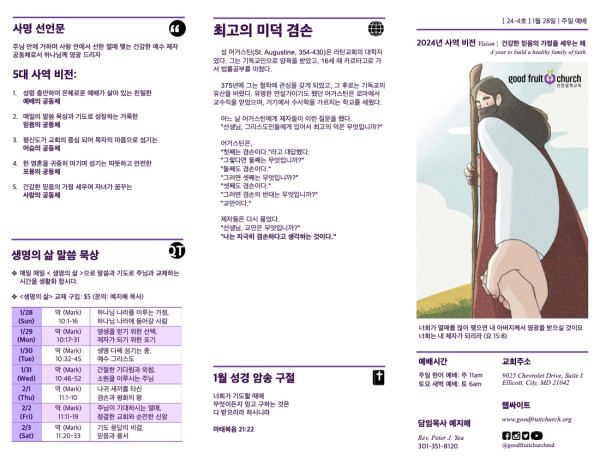 2024-01-28 페이지 정보 작성자 선한열매교회 댓글 0건 조회 5,716회 작성일 24-01-31 10:34 목록 본문 2024-01-28 이전글2024-02-04 24.02.05 다음글2024-01-21 24.01.22 댓글 0 댓글목록 등록된 댓글이 없습니다. 목록