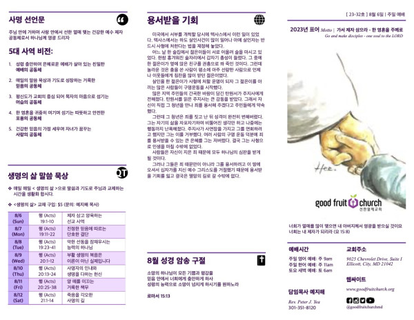 2023-08-06 페이지 정보 작성자 선한열매교회 댓글 0건 조회 4,699회 작성일 23-08-09 11:43 목록 본문 2023-08-06 이전글2023-08-13 23.08.21 다음글2023-07-30 23.08.09 댓글 0 댓글목록 등록된 댓글이 없습니다. 목록