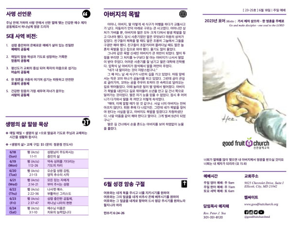 2023-06-18 페이지 정보 작성자 선한열매교회 댓글 0건 조회 6,140회 작성일 23-07-01 07:21 목록 본문 2023-06-18 이전글2023-06-25 23.07.01 다음글2023-06-11 23.06.10 댓글 0 댓글목록 등록된 댓글이 없습니다. 목록