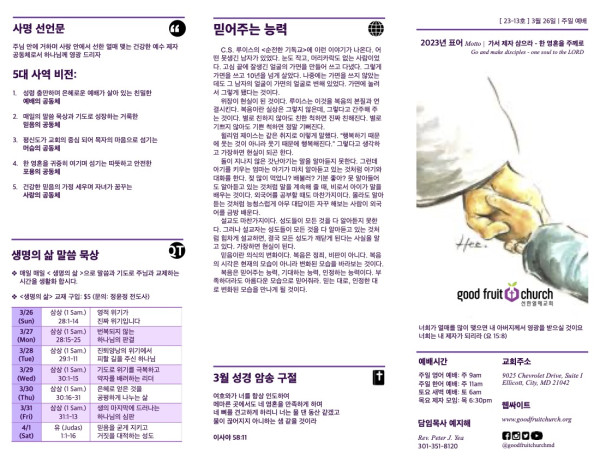2023-03-26 페이지 정보 작성자 선한열매교회 댓글 0건 조회 4,924회 작성일 23-03-25 17:54 목록 본문 2023-03-26 이전글2023-04-02 23.04.19 다음글2023-03-19 23.03.25 댓글 0 댓글목록 등록된 댓글이 없습니다. 목록