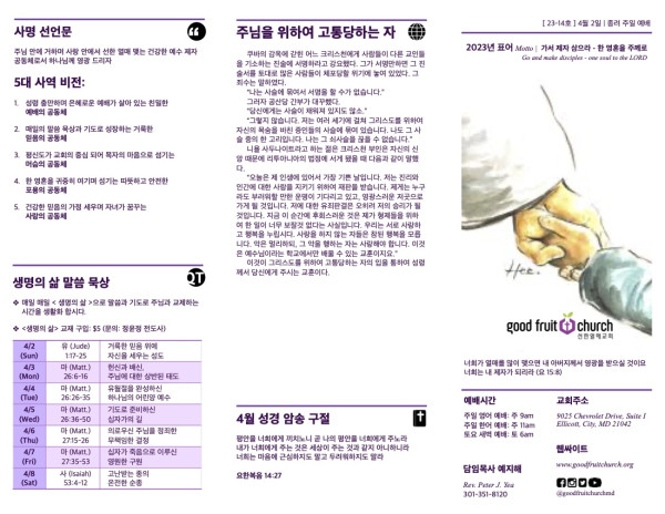 2023-04-02 페이지 정보 작성자 선한열매교회 댓글 0건 조회 4,933회 작성일 23-04-19 09:08 목록 본문 2023-04-02 이전글2023-04-09 23.04.19 다음글2023-03-26 23.03.25 댓글 0 댓글목록 등록된 댓글이 없습니다. 목록