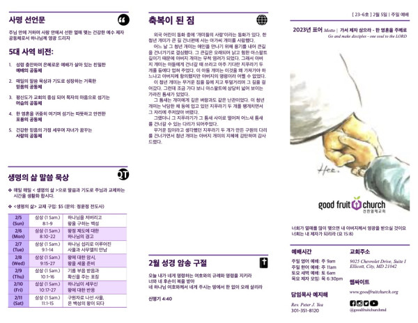 2023-02-05 페이지 정보 작성자 선한열매교회 댓글 0건 조회 5,051회 작성일 23-02-11 11:43 목록 본문 2023-02-05 이전글2023-02-12 23.03.01 다음글2023-01-29 23.01.28 댓글 0 댓글목록 등록된 댓글이 없습니다. 목록