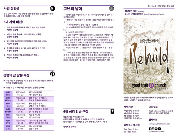 2022-06-12 페이지 정보 작성자 선한열매교회 댓글 0건 조회 7,702회 작성일 22-06-27 13:52 목록 본문 2022-06-12 이전글2022-06-19 22.06.27 다음글2022-06-05 22.06.08 댓글 0 댓글목록 등록된 댓글이 없습니다. 목록