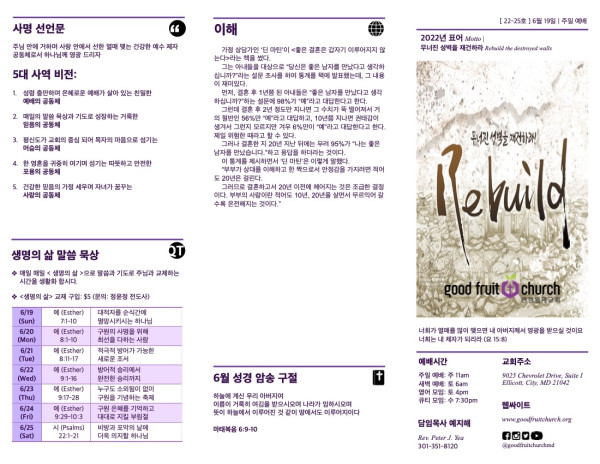 2022-06-19 페이지 정보 작성자 선한열매교회 댓글 0건 조회 7,703회 작성일 22-06-27 13:53 목록 본문 2022-06-19 이전글2022-06-26 22.06.27 다음글2022-06-12 22.06.27 댓글 0 댓글목록 등록된 댓글이 없습니다. 목록