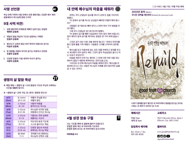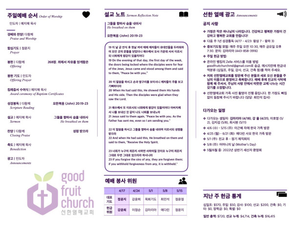 2022-04-17 페이지 정보 작성자 선한열매교회 댓글 0건 조회 8,935회 작성일 22-04-28 07:01 목록 본문 2022-04-17 이전글2022-04-24 22.04.28 다음글2022-04-10 22.04.28 댓글 0 댓글목록 등록된 댓글이 없습니다. 목록