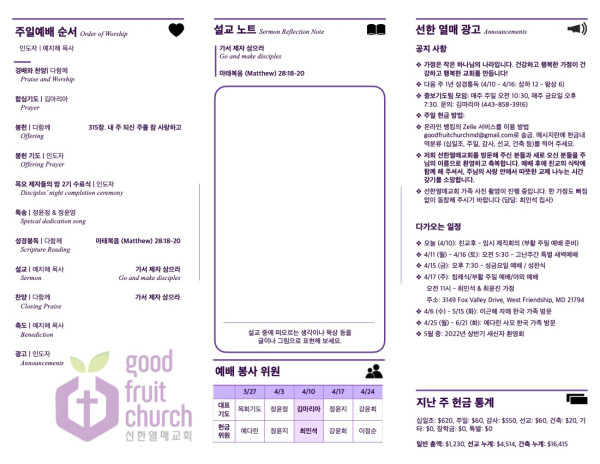 2022-04-10 페이지 정보 작성자 선한열매교회 댓글 0건 조회 8,364회 작성일 22-04-28 07:00 목록 본문 2022-04-10 이전글2022-04-17 22.04.28 다음글2022-04-03 22.04.04 댓글 0 댓글목록 등록된 댓글이 없습니다. 목록