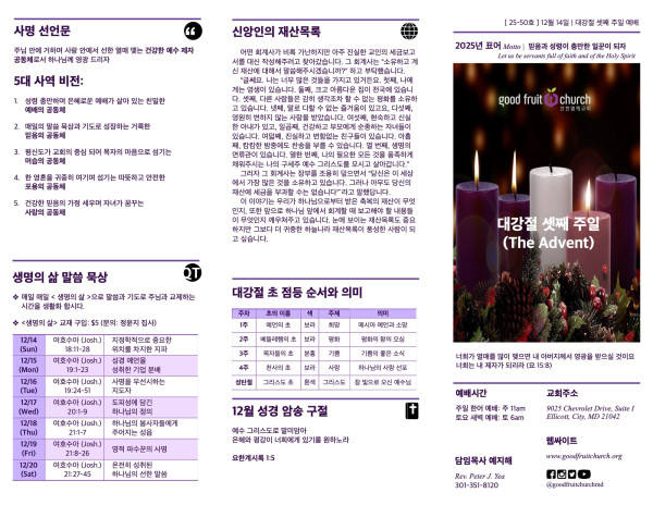 2025-12-14 페이지 정보 작성자 선한열매교회 댓글 0건 조회 9회 작성일 25-12-15 06:41 목록 본문 2025-12-14 다음글2025-12-07 25.12.08 댓글 0 댓글목록 등록된 댓글이 없습니다. 목록