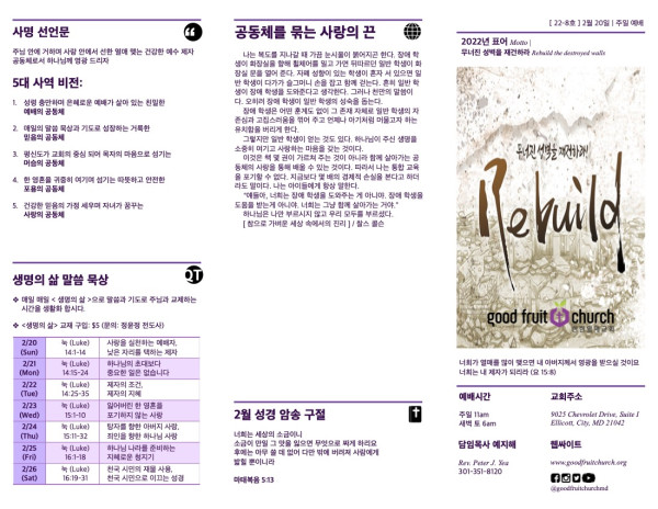 2022-02-20 페이지 정보 작성자 선한열매교회 댓글 0건 조회 7,956회 작성일 22-02-26 16:00 목록 본문 2022-02-20 이전글2022-02-27 22.02.26 다음글2022-02-13 22.02.16 댓글 0 댓글목록 등록된 댓글이 없습니다. 목록