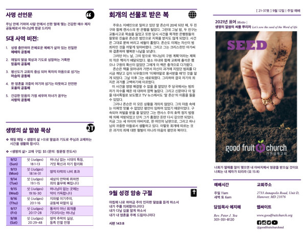 2021-09-12 페이지 정보 작성자 선한열매교회 댓글 0건 조회 10,567회 작성일 21-09-11 09:41 목록 본문 GFC 2021-09-12 주보 이전글2021-09-19 21.09.18 다음글2021-09-05 21.09.04 댓글 0 댓글목록 등록된 댓글이 없습니다. 목록