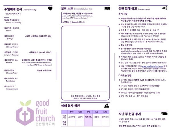 2021-05-02 페이지 정보 작성자 선한열매교회 댓글 0건 조회 10,321회 작성일 21-05-01 20:53 목록 본문 2021-05-02 주보 이전글2021-05-09 21.05.08 다음글2021-04-25 21.04.26 댓글 0 댓글목록 등록된 댓글이 없습니다. 목록