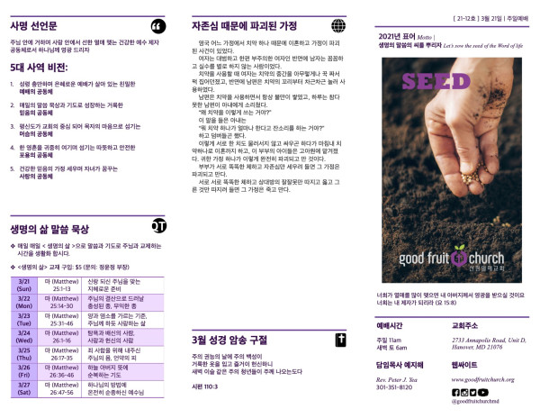 2021-03-21 페이지 정보 작성자 선한열매교회 댓글 0건 조회 9,826회 작성일 21-04-11 14:10 목록 본문 2021-03-21 주보 이전글2021-03-28 21.04.12 다음글2021-03-14 21.04.03 댓글 0 댓글목록 등록된 댓글이 없습니다. 목록