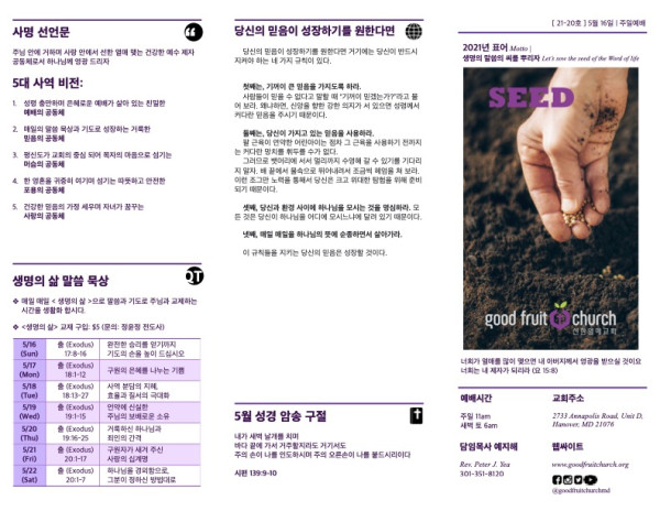 2021-05-16 페이지 정보 작성자 선한열매교회 댓글 0건 조회 10,488회 작성일 21-05-15 14:32 목록 본문 2021-05-16 주보 이전글2021-05-23 21.05.23 다음글2021-05-09 21.05.08 댓글 0 댓글목록 등록된 댓글이 없습니다. 목록