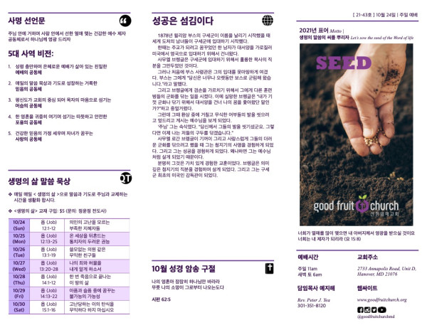 2021-10-24 페이지 정보 작성자 선한열매교회 댓글 0건 조회 10,449회 작성일 21-10-23 18:19 목록 본문 GFC 2021-10-24 주보 이전글2021-10-31 21.11.07 다음글2021-10-17 21.10.16 댓글 0 댓글목록 등록된 댓글이 없습니다. 목록