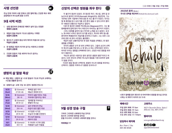 2022-09-25 페이지 정보 작성자 선한열매교회 댓글 0건 조회 5,300회 작성일 22-09-24 10:59 목록 본문 2022-09-25 이전글2022-10-02 22.10.19 다음글2022-09-18 22.09.24 댓글 0 댓글목록 등록된 댓글이 없습니다. 목록