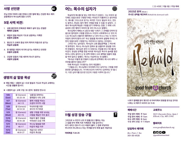 2022-11-06 페이지 정보 작성자 선한열매교회 댓글 0건 조회 6,559회 작성일 22-11-19 20:31 목록 본문 2022-11-06 이전글2022-11-13 22.11.19 다음글2022-10-30 22.11.05 댓글 0 댓글목록 등록된 댓글이 없습니다. 목록