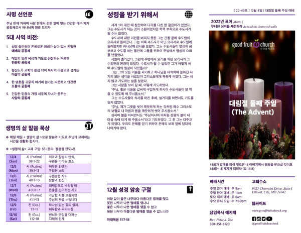 2022-12-04 페이지 정보 작성자 선한열매교회 댓글 0건 조회 6,662회 작성일 22-12-05 07:47 목록 본문 2022-12-04 이전글2022-12-11 23.01.14 다음글2022-11-27 22.12.05 댓글 0 댓글목록 등록된 댓글이 없습니다. 목록