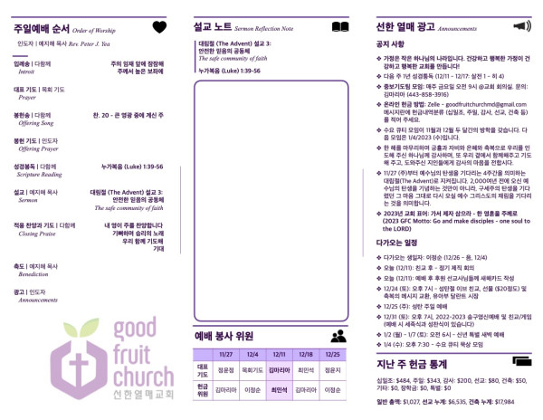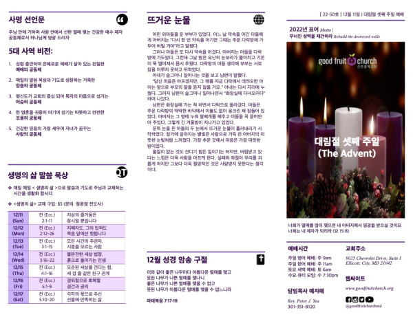 2022-12-11 페이지 정보 작성자 선한열매교회 댓글 0건 조회 6,543회 작성일 23-01-14 10:24 목록 본문 2022-12-11 이전글2022-12-18 23.01.14 다음글2022-12-04 22.12.05 댓글 0 댓글목록 등록된 댓글이 없습니다. 목록