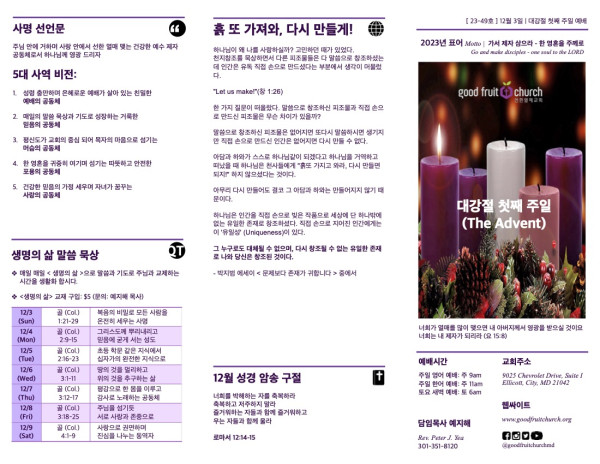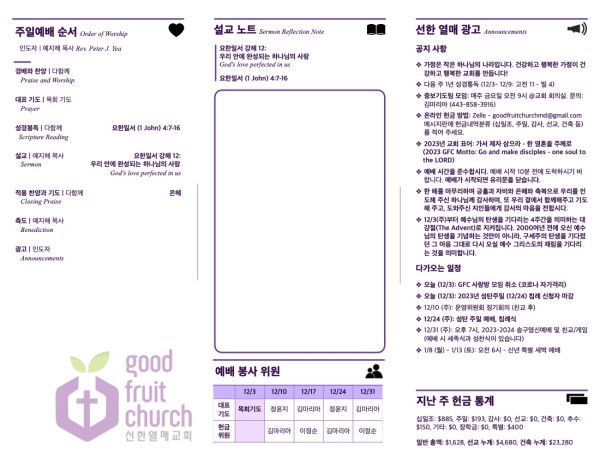 2023-12-03 페이지 정보 작성자 선한열매교회 댓글 0건 조회 5,846회 작성일 23-12-03 05:29 목록 본문 2023-12-03 이전글2023-12-10 23.12.15 다음글2023-11-26 23.11.27 댓글 0 댓글목록 등록된 댓글이 없습니다. 목록