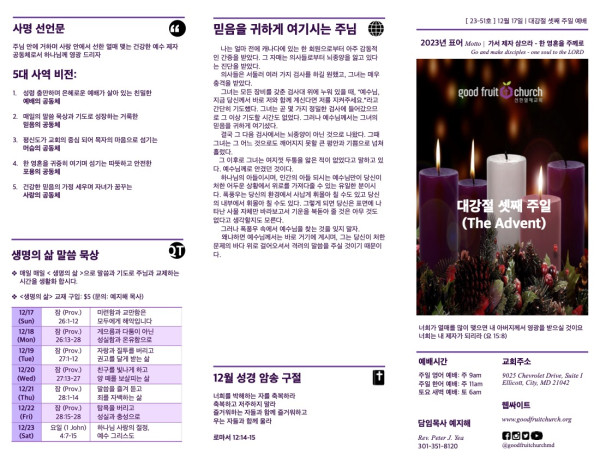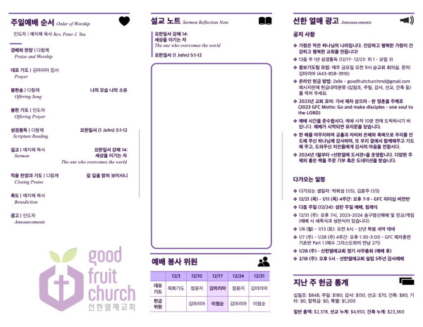 2023-12-17 페이지 정보 작성자 선한열매교회 댓글 0건 조회 6,467회 작성일 23-12-18 08:02 목록 본문 2023-12-17 이전글2023-12-24 23.12.27 다음글2023-12-10 23.12.15 댓글 0 댓글목록 등록된 댓글이 없습니다. 목록