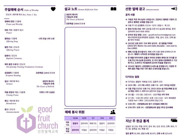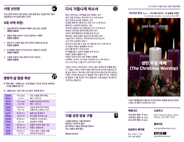 2023-12-24 페이지 정보 작성자 선한열매교회 댓글 0건 조회 5,854회 작성일 23-12-27 09:29 목록 본문 2023-12-24 이전글2023-12-31 24.01.02 다음글2023-12-17 23.12.18 댓글 0 댓글목록 등록된 댓글이 없습니다. 목록