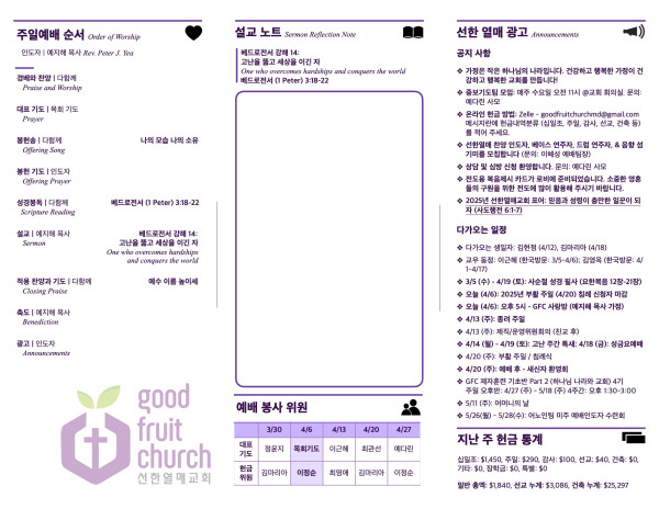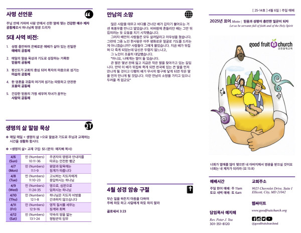 2025-04-06 페이지 정보 작성자 선한열매교회 댓글 0건 조회 2,128회 작성일 25-04-07 06:27 목록 본문 2025-04-06 이전글2025-04-13 25.04.14 다음글2023-03-30 25.03.31 댓글 0 댓글목록 등록된 댓글이 없습니다. 목록