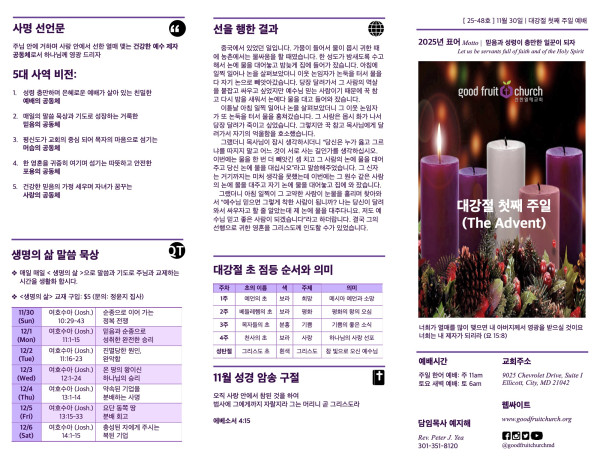 2025-11-30 페이지 정보 작성자 선한열매교회 댓글 0건 조회 74회 작성일 25-12-01 06:58 목록 본문 2025-11-30 이전글2025-12-07 25.12.08 다음글2023-11-23 25.11.24 댓글 0 댓글목록 등록된 댓글이 없습니다. 목록